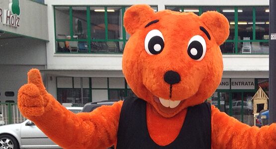 Auch der lebende OBI-Biber wartet auf die Besucher. Er sorgt für Spaß und Leckereien!